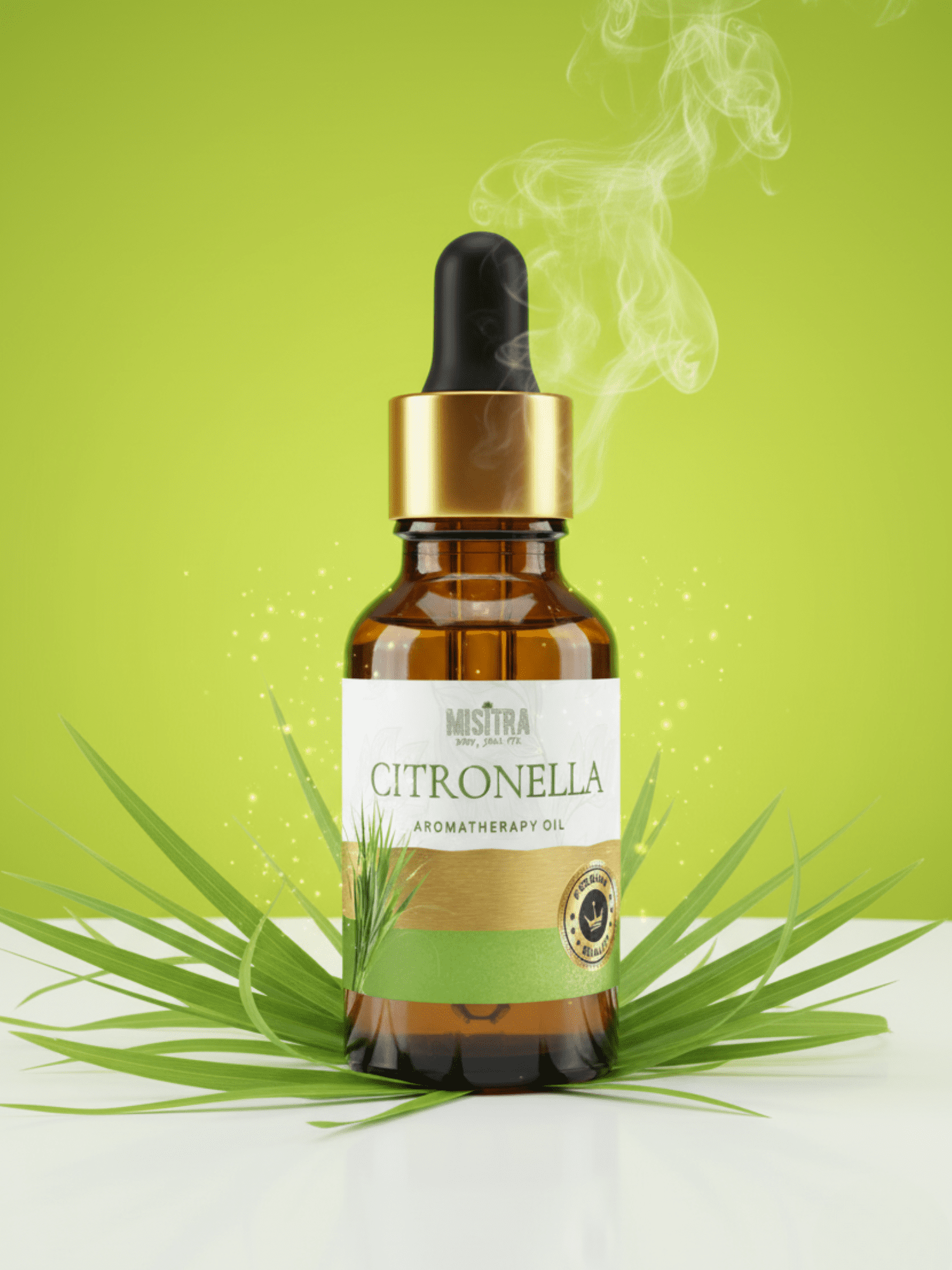 100% pure citronella essential oil, steam-distilled from citronella leaves and stems.